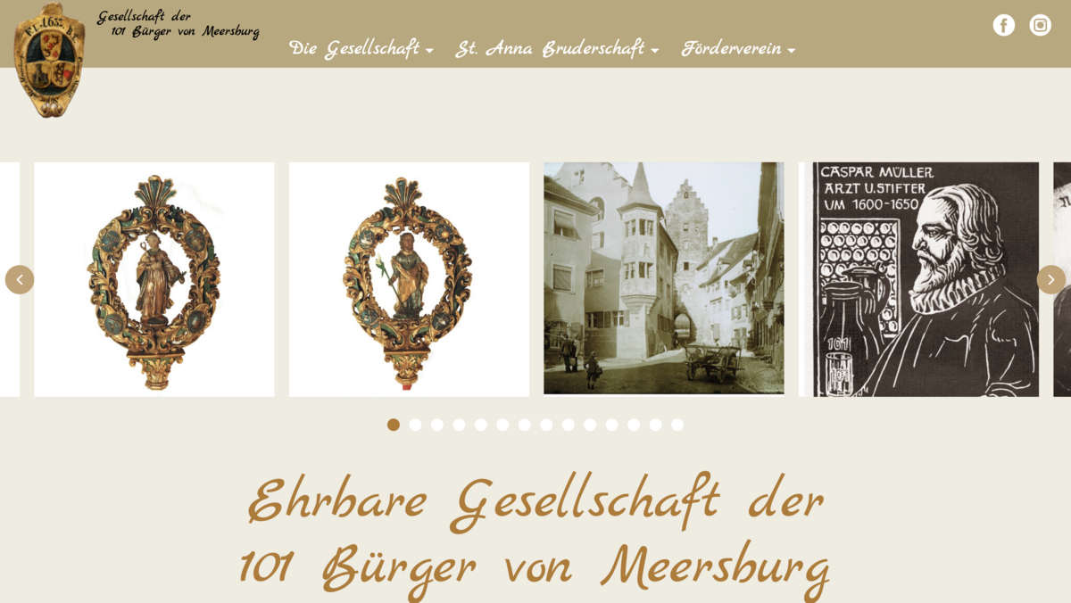 Für die Ehrbare Gesellschaft der 101 Bürger von Meersburg haben wir einen umfassenden Relaunch der Webseite mit TYPO3 realisiert. Die Gesellschaft zählt zu den ältesten ununterbrochen bestehenden Bürgergesellschaften Deutschlands und hat ihre Wurzeln im 15. Jahrhundert. Sie ist eng mit der Geschichte der Stadt Meersburg am Bodensee verbunden und pflegt Traditionen wie die St. Anna Bruderschaft und die jährlichen Buß- und Bettagsfeiern im Gasthaus „Bären“, das als ihre Trinkstube dient.