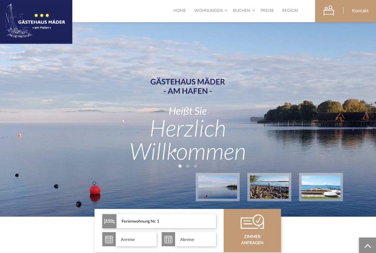 Für das Gästehaus Mäder am Bodensee durften wir den modernen Webauftritt gestalten und technisch umsetzen. Das familiengeführte Haus bietet komfortable Ferienwohnungen und ein Ferienhaus in direkter Hafennähe, nur wenige Meter von der Promenade entfernt.