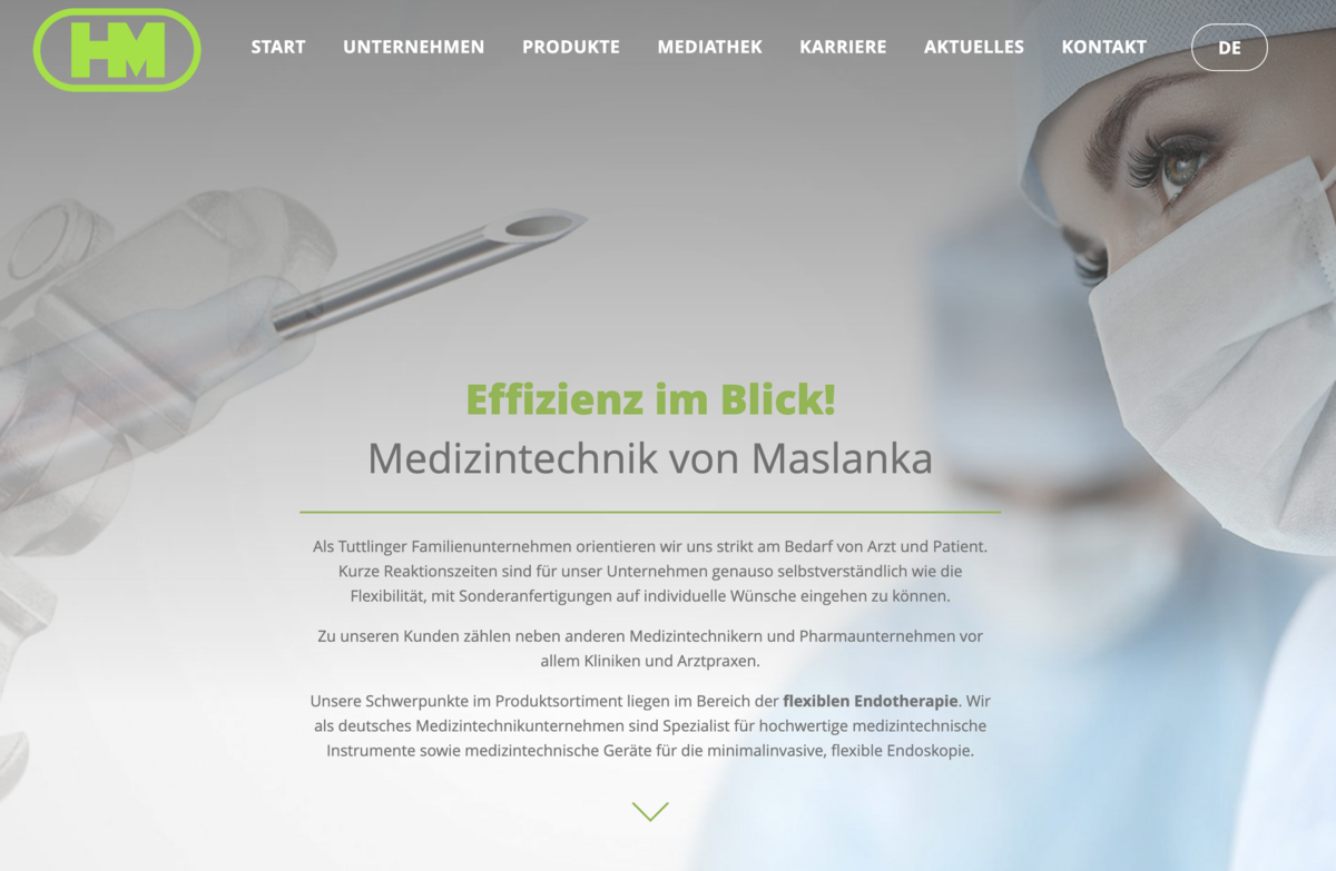 Für den Relaunch der Unternehmenswebseite haben wir H. + H. Maslanka Chirurgische Instrumente GmbH mit TYPO3 neu aufgestellt. Das Projekt umfasste eine moderne, benutzerfreundliche Struktur, optimierte Inhalte und eine klare Darstellung des umfangreichen Portfolios an hochwertigen Instrumenten für die flexible Endoskopie. Kliniken, Arztpraxen und Medizintechnikunternehmen profitieren nun von einem ansprechenden, informativen Onlineauftritt, der Qualität und Präzision auch digital widerspiegelt.