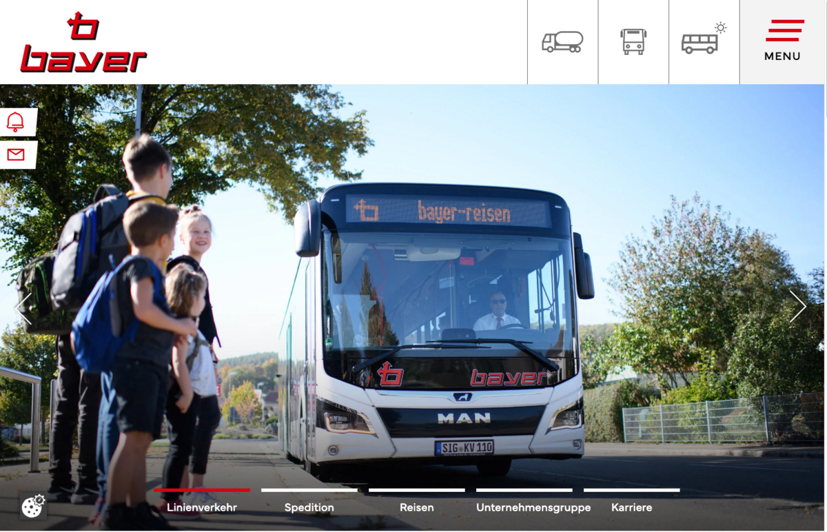 Für die Robert Bayer GmbH durften wir eine moderne Webseite auf TYPO3 Basis erstellen, die sowohl das traditionsreiche Unternehmen als auch seine vielfältigen Leistungsbereiche – Mineralölspedition, Bus- und Linienverkehr sowie Reisearrangements – in den Mittelpunkt stellt. Das Design & Konzeption hat vergissmeinnicht | Werbeagentur aus Konstanz übernommen.