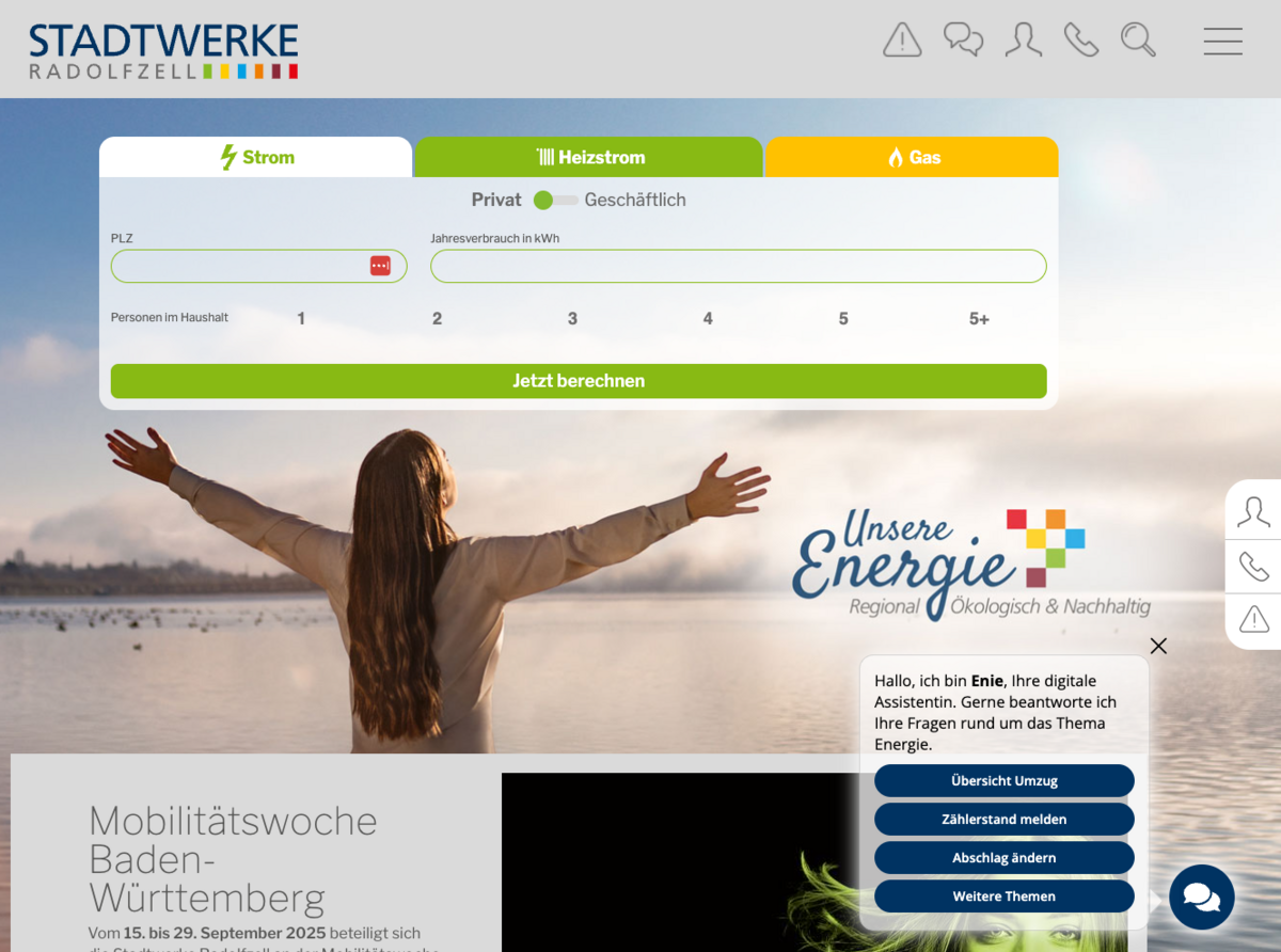 Mit diesem Relaunch präsentieren die Stadtwerke Radolfzell ihre umfangreichen Angebote in einem modernen, benutzerfreundlichen Webauftritt, der technisch zuverlässig und zukunftssicher betrieben wird.